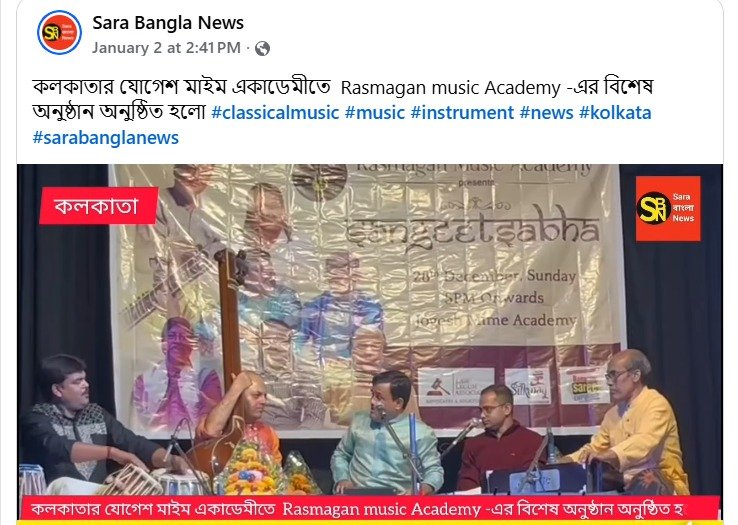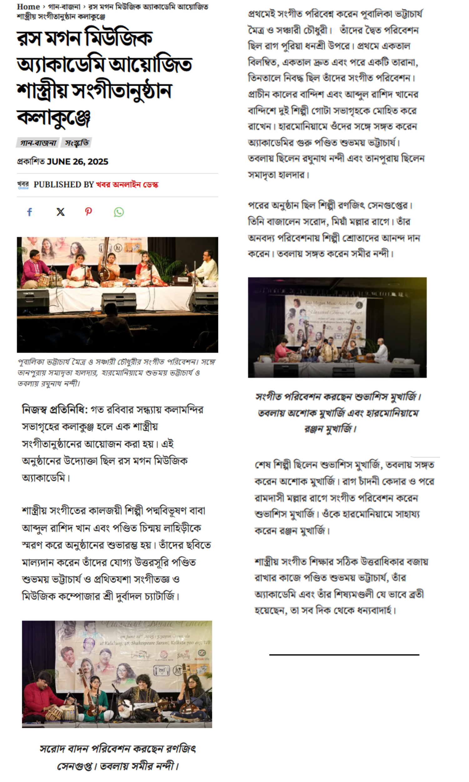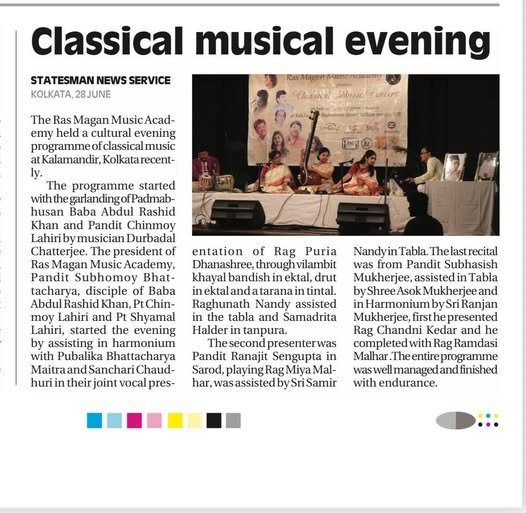 RASMAGAN MUSIC ACADEMY covered by Indian Newspapers